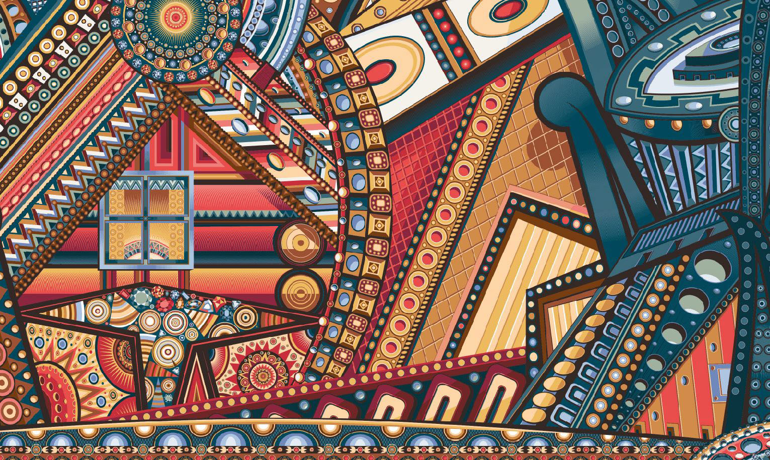 Emerald mines of the Urals. Russian gems, precious stones. The theme of fairy tales. Rapport. Seamless pattern. Kaleidoscope, painting of the dome, theatrical stage.